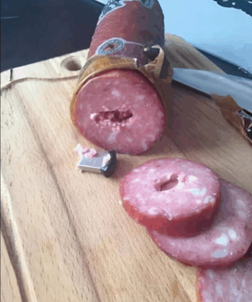 Η καρδιά μου χτύπησε πιο γρήγορα καθώς έκοβα προσεκτικά το λουκάνικο κατά μήκος.Και τότε το είδα. Κάτι ασημένιο έλαμψε μέσα στη σάρκα. Αρχικά σκέφτηκα ένα κομμάτι αλουμινόχαρτο, αλλά όταν το τράβηξα προσεκτικά, σχεδόν πάγωσα: στα χέρια μου ήταν ένα USB, καλυμμένο εντελώς με στρώμα κρέατος και λίπους.