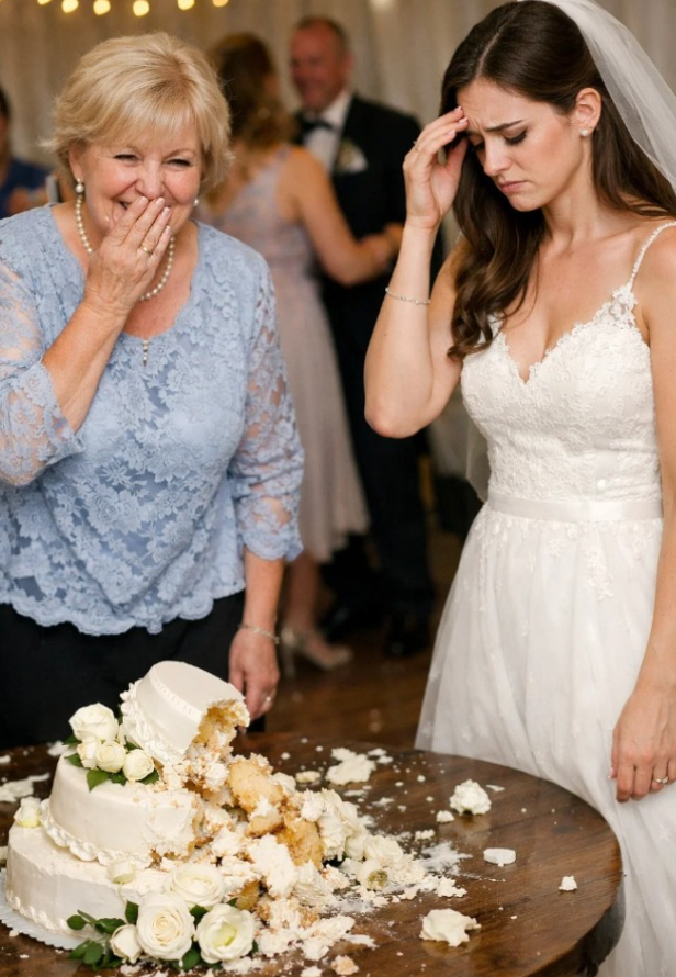 Μέχρι που ήρθε η τούρτα. Τριών ορόφων, στολισμένη με φρέσκα λουλούδια, στη μέση της αίθουσας. Η πεθερά μου στάθηκε εκεί, και ξαφνικά είπε: