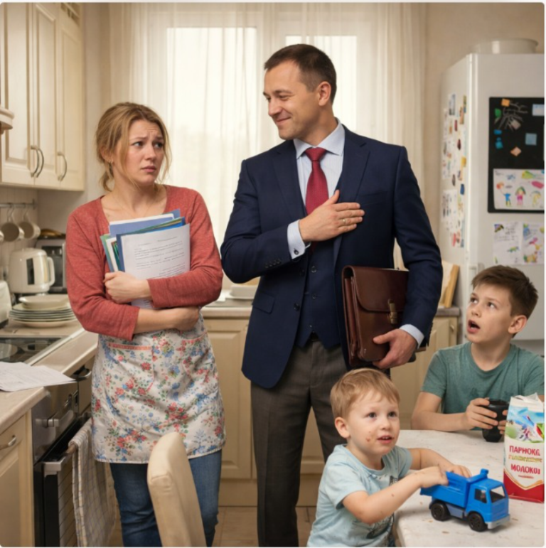 Στην πόρτα εμφανίστηκε ο Βαντίμ. Τον συνόδευε μια βαριά, έντονη μυρωδιά αρώματος — κάτι που η Ντάρια πάντα ένιωθε αποπνικτικό. Τέλεια σιδερωμένο πουκάμισο, ακριβό ιταλικό κοστούμι — έμοιαζε με άνθρωπο που έχει πλήρη έλεγχο της ζωής του.