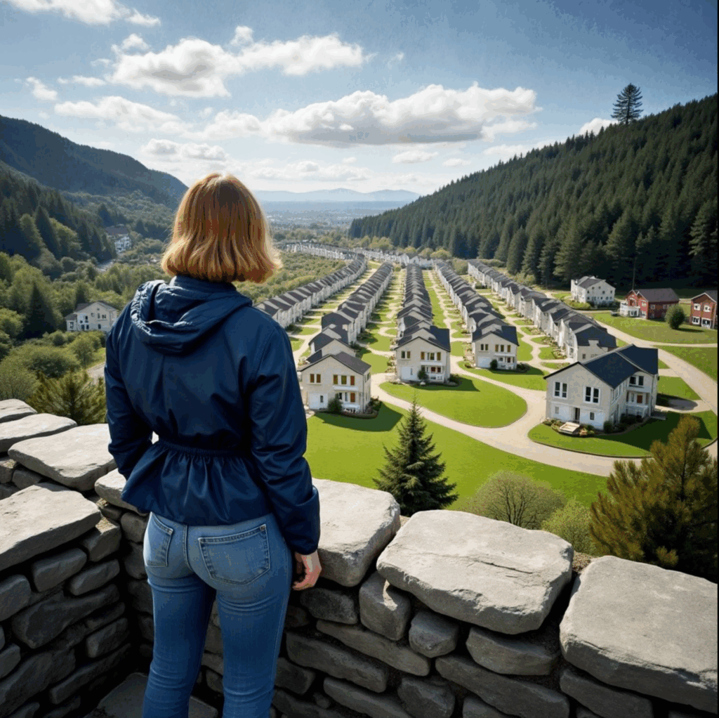 Ανεμογεννήτριες γύριζαν αργά στους λόφους, παιδιά έτρεχαν γελώντας στα μονοπάτια, και οι γείτονες αντάλλασσαν φιλικούς χαιρετισμούς. Ήταν ένας ζωντανός οργανισμός, αυτάρκης και αρμονικός.