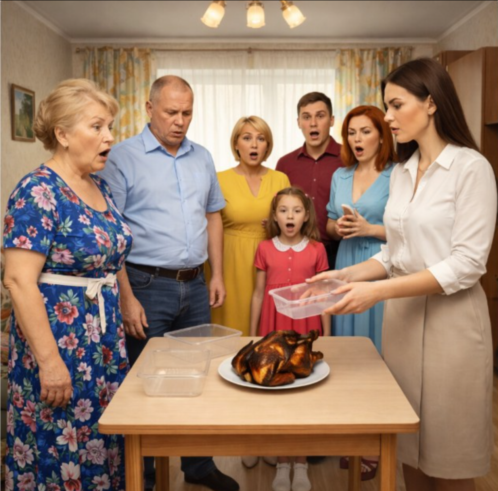 Ο Βάντιμ απέσπασε ένα χαμόγελο με το ζόρι:— Περνάτε, αγαπητοί καλεσμένοι!Πήγαν στο σαλόνι.Και πάγωσαν.Το τραπεζομάντιλο ήταν καθαρό. Αυτό ήταν όλο.Πάνω: πλαστικό, θλίψη, ένα ολόκληρο κοτόπουλο σαν ατύχημα.Η Ταμάρα Ιγκορέβνα σταμάτησε.