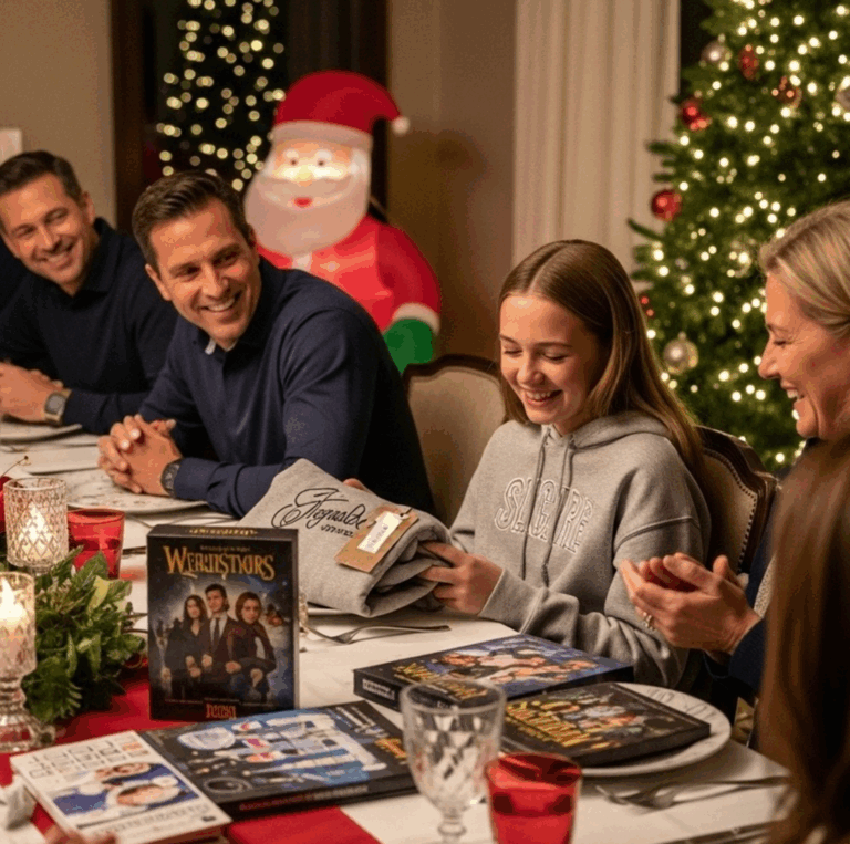 Και τότε συνέβη.Η Μάντισον άνοιξε πρώτα τη φούτερ, κοίταξε την ετικέτα — χωρίς υπογραφή — και την άφησε στα γόνατά της. Τα βιβλία απλώς σήκωσαν τους ώμους. Το σετ σχεδίου — το αγαπημένο μου — έλαβε μόλις μια ματιά.