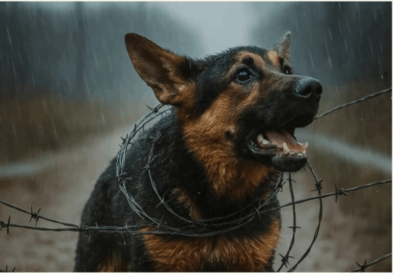 Το μικρό κουτάβι ήταν απελπιστικά μπλεγμένο στο συρματόπλεγμα, στριφογυρνούσε και προσπαθούσε να ξεφύγει με πανικό. Κάθε κίνηση φαινόταν να σφίγγει ακόμη περισσότερο τους σκληρούς κρίκους γύρω από το μικρό και εύθραυστο σώμα του, σχίζοντας τη γούνα και το δέρμα του.